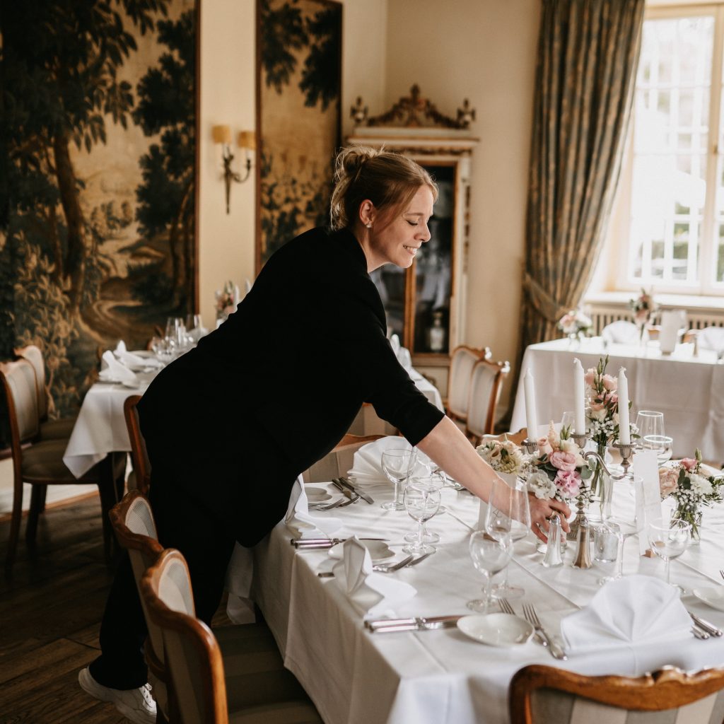 Dieser erste Moment, der Blick auf Eure liebevoll gestalteten Tische, die wunderschönen zarten Blumen, der Duft, die leuchtenden Kerzen, die Magie, die in der Luft liegt. Für dieses eine, so besondere Gefühl geben wir an Eurem Hochzeitstag wirklich alles…
